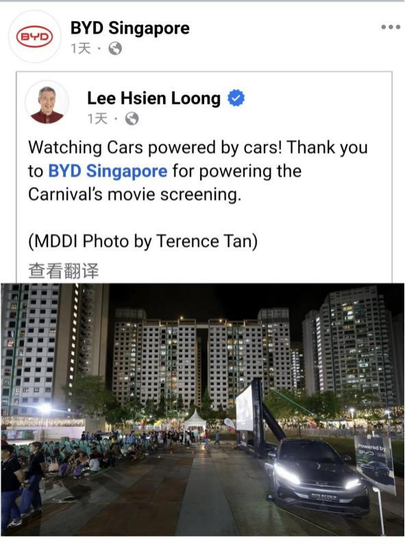 李显龙随后在其个人社交媒体上发文称,感谢比亚迪新加坡分公司对于嘉年华活动的支持。